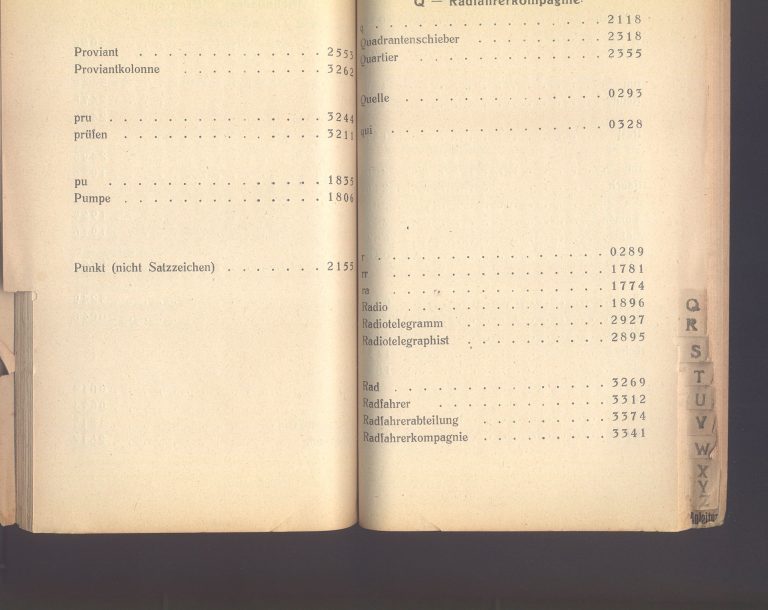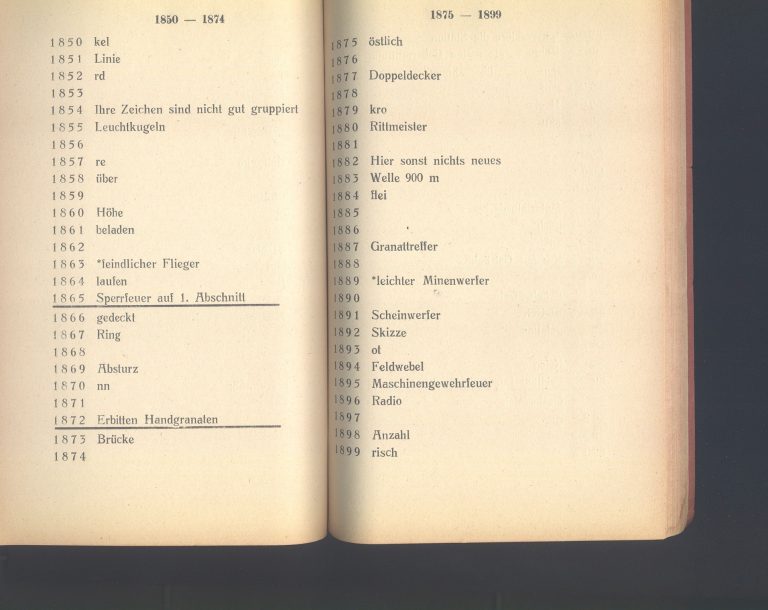 Ez ugyan nem második világháborús anyag, de attól még témába vág – és nem mellékesen kész csoda, hogy megmaradt. Ezt a két (chiffre-dechifre – azaz kódoló-dekódoló) könyvecskét anno az Osztrák-Magyar Monarchia hadseregének titkos rádióhíradásában használták… (A szerző tulajdona.)