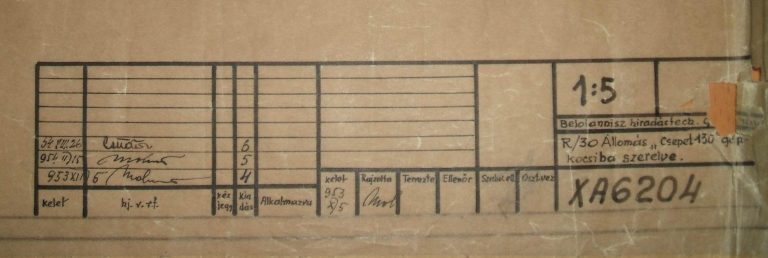 Az XA6204 számú rajz dátuma 1953 október és a Beloianisz Hiradástechnikai Gyár szignálta. A rajzból arra következtetünk, hogy a készülékek (adó, vevő, tápegységek) 1953 végén már készen voltak, valamennyit legyárthattak belőle, de a kocsifelépítmény még tervezés alatt állt, úgy gondoljuk csak 1954-ben kezdték berendezni az első példányokat.