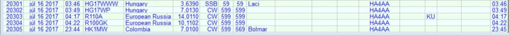 Azért be is hallgattam korábban a sávba, és egy prefixet pontosan vettem 7,013 MHz-en: HK. Nagyon erősen jött! A teszthívásom végét meghallotta HK1MW (ő volt az, akit korábban hallottam), és visszakérdezett. A CQ de HA4AA HA4AA -ra azonnal válaszolt Bolmar 569-el. Én 599-et adtam neki. Rövid volt a QSO, csak a neveinket adtuk még le, de az örömöm még mindig tart.