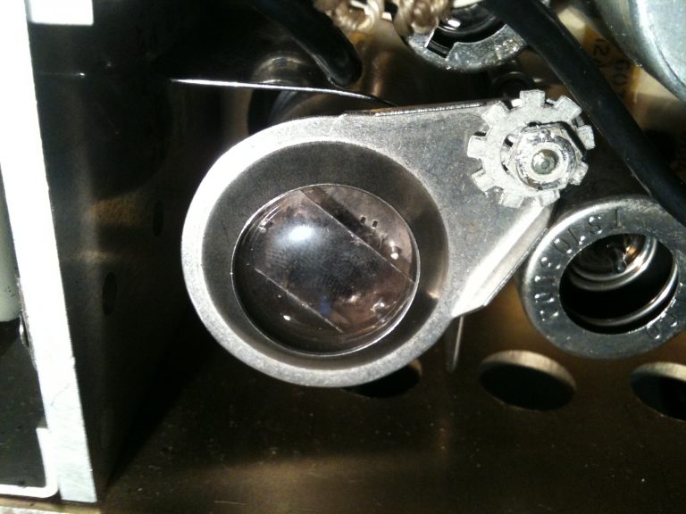 A rossz csövet akkor lehet a legjobban fölkutatni, ha közben feszültség alatt van a lomhalom. Ez persze némi izgalommal jár, hiszen ki az az amateurtárs, aki szereti, ha a 26 Voltos egyenfeszültség némi árammal körítve megcsiklandozza a hab testét? Mivel mi nem sorolunk az önkínzók gyülekezetébe, persze hogy ügyeltünk a részletekre. A javítás első lépcsője a csöveket fedő búrák lepattintása. Ez néha megy, néha nem. Az utóbbi esetről természetesen nem az ötletes bajonettzár, hanem a fizika és a nyomában járó deformáció tehet, amely a kört stadiongörbére nyomorította. (Vagy valakinek az óvatlan és erőszakos ujja – de erre gondolni sem merünk.) Végül persze az összes esetben győzött a fizikai erőszak, s mind a fedők, mind a tube-k kijöttek a helyükről. (És persze vissza is mentek oda.)