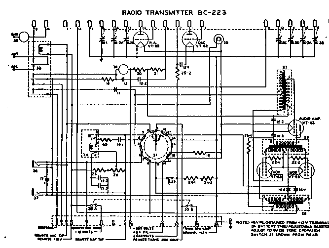 A BC653 típusú, négy csöves adót, távbeszélő üzemben tizenkettő-huszonkettő Watt teljesítmény, távíró üzemben ötven-kilencven Watt antennateljesítmény jellemezte. Ötszáz vagy ezer Volt anódfeszültségét umformer alakította át a kocsik tizenkettő vagy huszonnégy Voltos akkumulátoráról. A kétféle teljesítmény és feszültség adatból kitűnik, hogy az anódfeszültség átkapcsolásával az adókészüléket növelt vagy csökkentett teljesítményű üzemben lehetett használni.