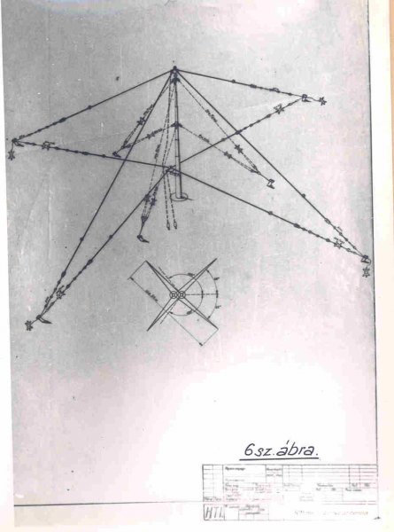 Az R/7 alapantennája a T-sugárzóval és a két oszloppal