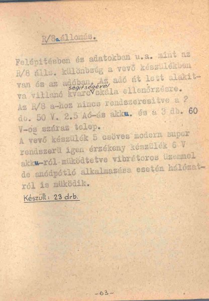 Az R/8a állomás rövidke ismertetője a HTI könyvéből