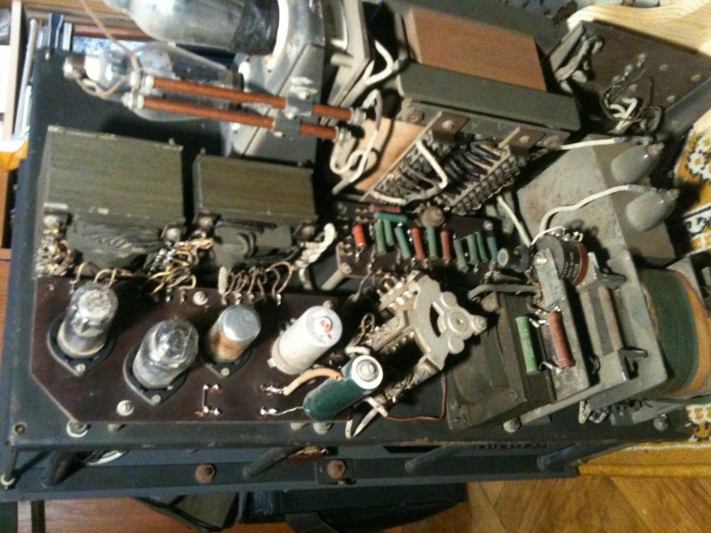 Egy különleges rádió javítása olykor archeológiai munkának is beillik. Itt van például a tárgyalt és szokatlan körülmények között föllelt FuG10Sk köré épített adó. Nekifutásként Ádi barátommal nagy nyomású levegővel kifújtuk belőle a port és a pókcsaládokat, de ez még azért csak első megközelítésben, ha tetszik, távolról nézvést jelentett valamit. A következő etap a mechanika áttekintése volt. Itt már előkerültek mindenféle tarkabarka hibák – példának okáért száznyolcvan fokkal elfordult tengelyek, semmibe csatlakozó érintkezők és más efféle finomságok. Idővel persze kapcsolási rajz és kezelési utasítás híján is rájön az ember, mit kell meghúzni-megereszteni, összébb nyomni, kivenni és cserélni.