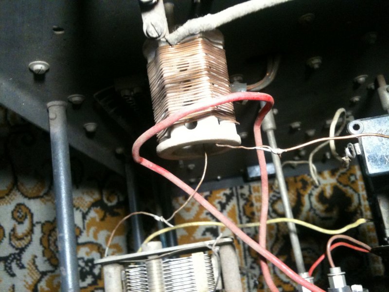 A piros kábel a tekercs körül a jelkicsatolás: a másik felén az előlapon egy izzó dolgozik – mentül jobban fénylik, annál több a kimenő Power 🙂 Zseniálisan faék egyszerűségű megoldás!
