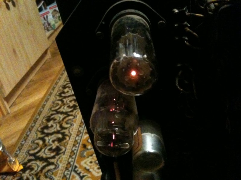A duplikált “búrák” közül az egyik pillanatokon belül kidőlt, de hála Ádám barátomnak és a külső D-12-es raktárnak volt egy tartalék ubisüveg. Itt jegyezzük meg, hogy az anódkör kapcsolója inkább egy, mint kétállású – lévén tízből nyolcszor pozíciójától függetlenül képes nagyfesz és áram alatt tartani az egész miskulenciát. Ez amúgy tuti Günther bosszúja 1944-ből azért, mert a Me-210-ből valami “ellenálló” kiszerelte a kerékkiengedő billenőjét. Egyetlen szerencsénk, hogy a kék fényű üvegbúrák elárulják, éppen mi van. Helyesebben mi nincs – hiszen ha eltűnik az anódfesz, akkor ugrik a világítás is. 🙂 További mérhetetlen előny, hogy a kilencszáz Volt méricskélése rendkívül szórakoztató, pláne, ha segítség híján, egyedül, egy gondosan zárt lakásban végzi az amateur. (Ne csinálják utánunk, ha lehet.) 🙂