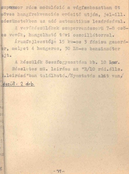 A minap bemutatott R/9-hez hasonlóan ez sem apró rádióállomás volt, s rá is igaz, hogy mind a neten, mind a katonai híradással foglalkozó könyvekben akad némi zavar arra nézve, hogy mit is tekinthetünk valójában az R/10-nek. Mint sokszor és számos helyen leírtuk, velünk céltalan vitatkozni, mert a tények (esetünkben az 1943-as kiadású HTI könyv) magukért beszélnek. Márpedig ha oda a korban rigorózusan azt írták, amit, akkor innen felesleges kétségbe vonni az adatokat. Utalunk itt például a reprádiók kapcsán más fórumokon kialakult polémiára, ahol egyesek a nyilvánvaló fényképek és leírások ellenére is kötik az ebet a karóhoz, hogy ők jobban tudják, melyik gépbe mit szereltek, mint azok, akik ezt a munkát anno valóban végre is hajtották. Mi tehát maradunk az eredetiségnél – az R/10 kapcsán is. 🙂