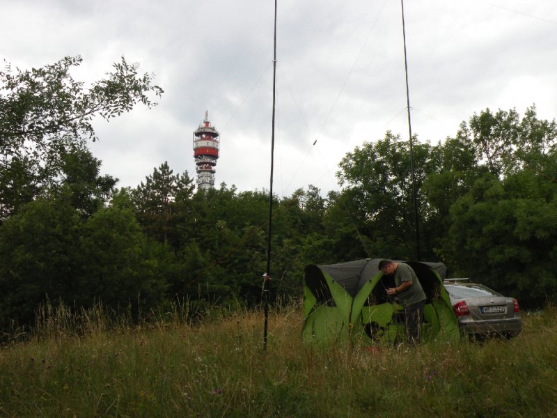 HA5DON a sátor bejáratánál ügyködik, tőle (nekünk) balra a HHH objektuma…