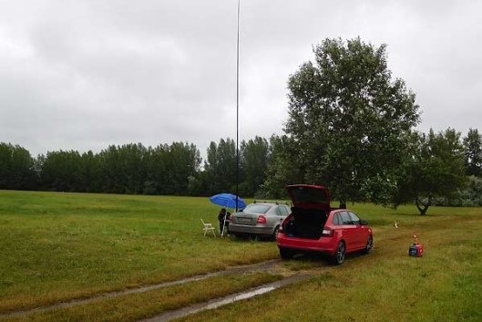 Annak ellenére, hogy az időjárás nem kedvezett az idei Field Day-nek, mi mégis elindultunk Szolnokról és Budapestről a Kiskunsági Nemzeti Parkba. A találkozó helye a Kígyósi Csárda lett, és maradt is egy ideig, mivel úgy esett az eső, mintha dézsából öntötték volna. Tizenegyre érkeztünk, így a szakadó eső láttán egy kis tanácskozásba fogtunk egy jó halászlé mellett. Elhatároztuk, hogy valahogy mégis megpróbálunk pár QSO-t összehozni, ha már ilyen messzire eljöttünk. Elvégre egy RKSZ-es tag nem riad vissza az esőtől, mert ha már attól is visszariad, mi lenne, ha valódi vészhelyzetről lenne szó. Az eső egy rövid időre alábbhagyott, mi pedig megszállott módon nekiláttunk a munkának.