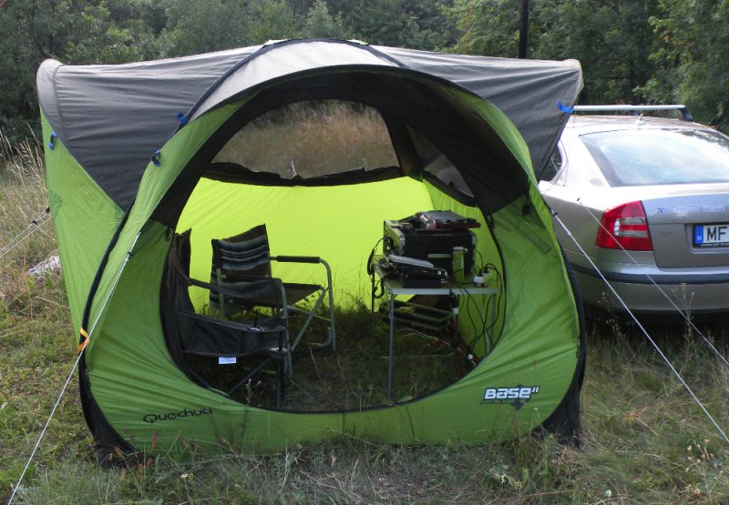 A sátor nagyon hasznosnak bizonyult, kis eső is nagyon megzavarhatja a kitelepülést, akárcsak a 2016-os Kiskunsági Nemzeti Parkba való kitelepülésünk, ahol hosszan tartó esőzés miatt csak egy rövidke ideig sikerült rádióznunk. Pillanatnyilag megoldottnak tűnik a feladat, bár majd még egy nagyobb zivatar közben fog kiderülni mennyire jó ez a megoldás.