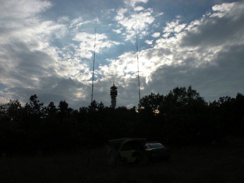 István, HA5DON kész a forgalmazásra, indulhat az akció. Először húsz méteren próbálkoztunk, de vajmi kevés eredménnyel. Itt csak négy QSO-t sikerült összehozni, két orosz, egy bolgár és egy makedón állomással. Nem siettük el a dolgokat. Egy kis szünetet is beiktattunk és kényelmesen megebédeltünk. Majd csak utána fogtunk neki újra a „munkának” mint két jóllakott óvodás. Hirtelen felerősödött a szél és igyekezett a sátor falait döngetni, de csak a sátorban levőket bosszantotta. Az eső is eleredt, de szerencsére csak kisebb zápor kerekedett ki belőle, ami nem sokára el is állt. A hőmérséklet alább esett, és már egyáltalán nem tűzött a nap.