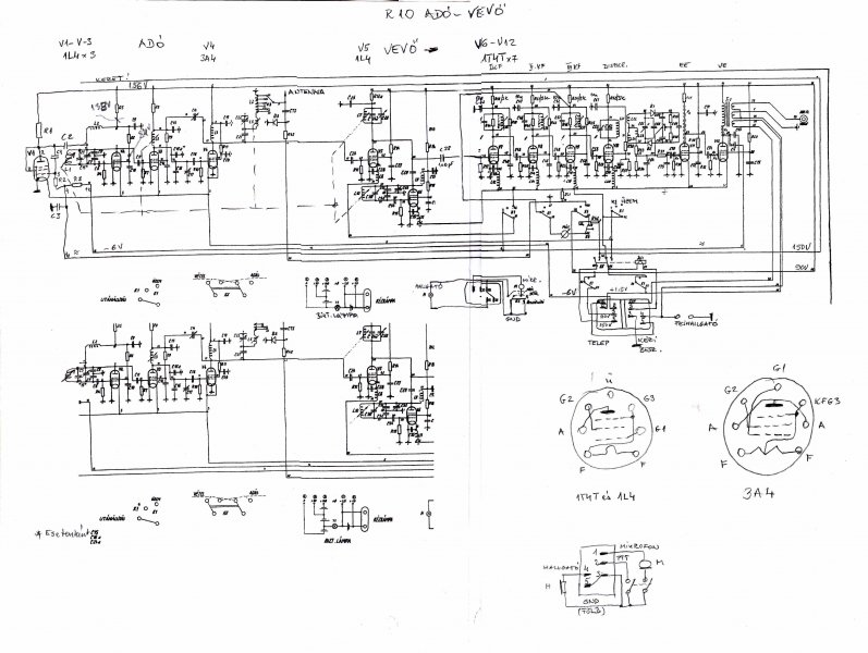 Az R-10 adó-vevő részletes kapcsolási rajza
