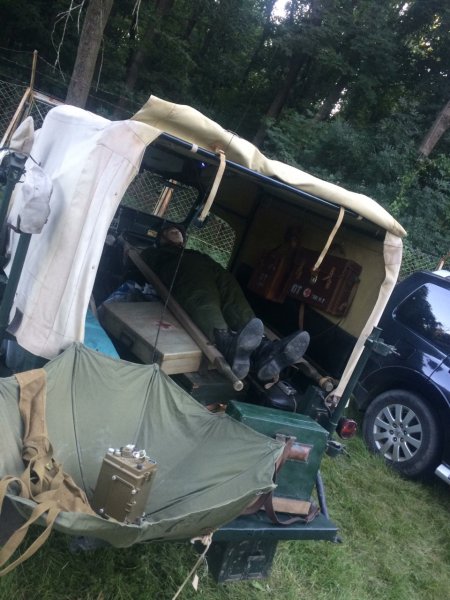 Ha már Fanni, mindenképpen illik megemlíteni, hogy a kisasszony egyáltalán nem félt a nehéz vasak között – ami különösen annak fényében lesz érthető, hogy Ő volt Sanyi sofőrje. A rangjelzés amúgy a nekigyűrkőzés okán nem szemlélhető. A háttérben természetesen ott a Zil-131 és a Buhanka, amely a formájáról kapta becenevét! 🙂 Közben HG6PTZ Tomi érkezik föltekinteni az eseményeket…