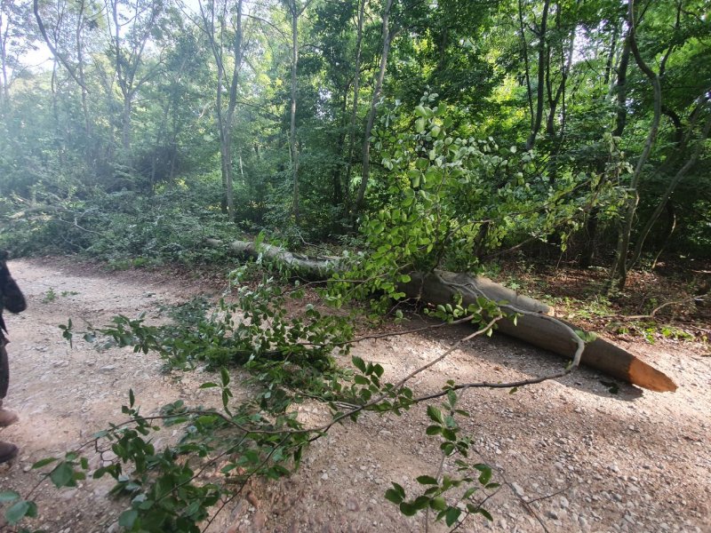 Mit adott az ég? Vasárnap, mindenki távozása után egy (tényleg) jó nagy fa (tekintélyes) ága rádőlt az útra. Istenes szerencse, hogy a ránézésre 2,5-3,5 tonna közé tehető törzs nem ütött agyon senkit, de ettől a tény még tény maradt, mi szerint az teljesen lehetetlenné tette a közlekedést Vilmos felé. S mivel másnap a Zil-131 is arra akart gördülni, jobb híján úgy döntöttünk, hogy a HA7PTY Pityesz által irányított géperejű járművel elhúzzuk a cuccot mi magunk – azaz még HA5RV Stewart, HA7EO Attesz, HA8BIT Peti és HA5CBM Miklós…