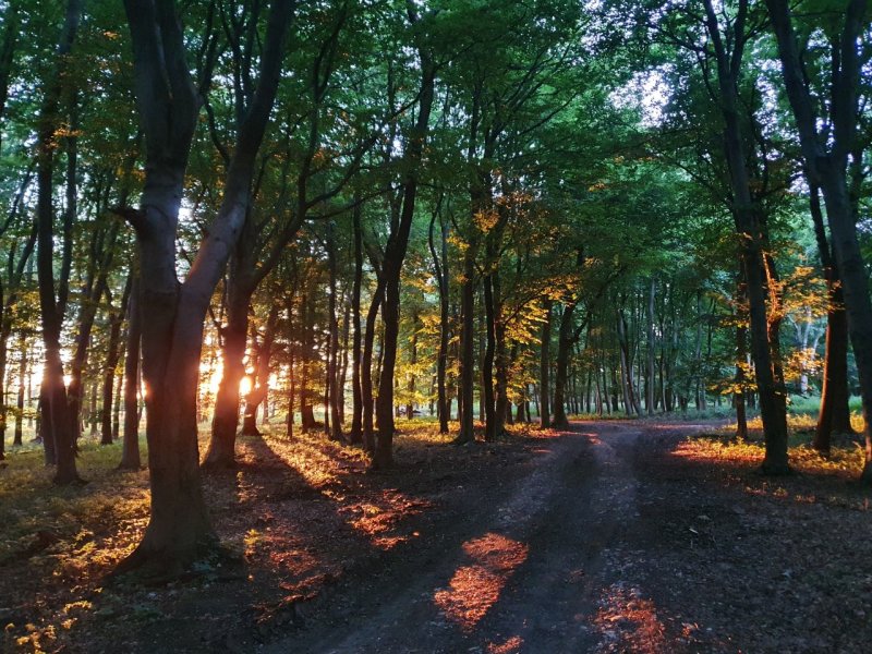Az ember elballag az erdőbe, a naplemente felé. Közben meg ez a nyugalom árad a tájból. Aranyló súrlófények, fák, csönd, messze elhajoló árnyékok – kell ennél szebb egy amúgy is csodás nap nyomában?