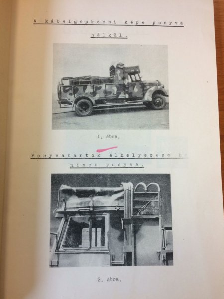 A fenti képen szemlélhető Krupp L2H-143 kábelgépkocsi a 39 M többerű kábellel felszerelt raj személyzetének és műszaki anyagának szállítására szolgált. A rakteret tábori tarkára festett vászon fedte, melyet négy ívelt tartóra lehetett rögzíteni. A teljes raj felszerelését három, azonos kivitelű géperejű járművel oldották meg. Az egyik kocsira tizennégy, a másik kettőre tizenhárom-tizenhárom kábeldob került. Az alábbi galéria a két könyvből lett kifotózva. Mivel sok a párhuzamosság, az érdekesebb részeket igyekeztünk elétek tárni.