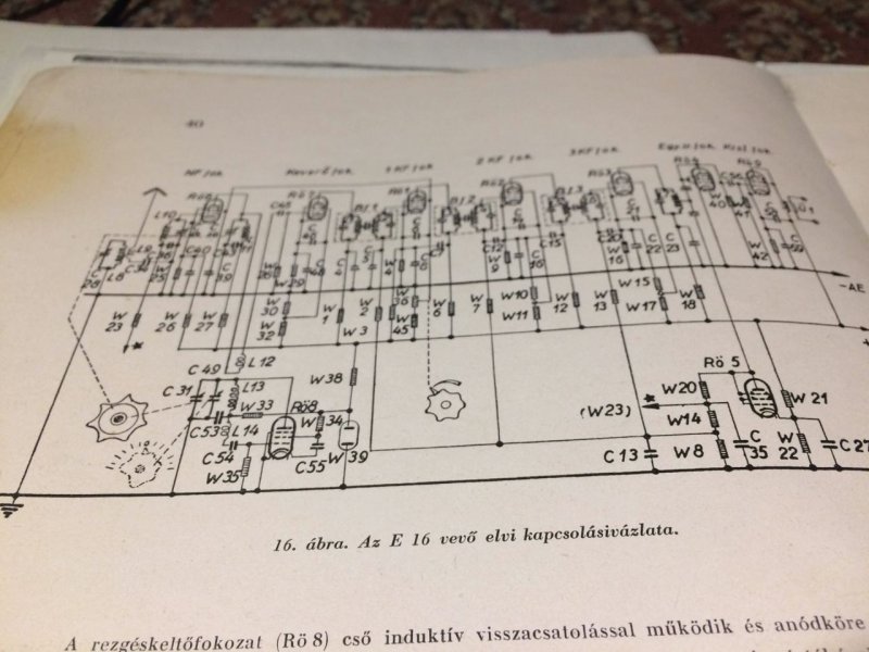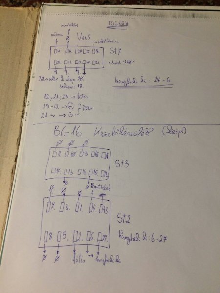 A bal szélső két vezetéken dől ki a hangfrekvencia, a jobb oldali csatlakozón pedig a fűtés (tizenkét-) és az anód (kétszáztíz Volt) valamint az antennabemenet szemlélhető
