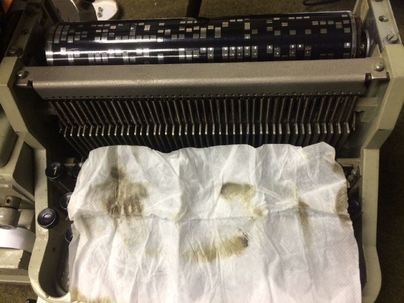 Visszakanyarodva a múzeumi készülékre fontos elmondani, az külsőleg igen szépen megőrződött. A működés helyreállításának ugyan nem része, de elvégeztük a bőrök paraffinozását, továbbá egy teljes külső-belső pucolást is közbeiktattunk. A mechanikai részekről eltávolítottuk a beszáradt zsírt és rátapadt piszkot, a csapágyakat kimostuk és a megfelelő pontokon az olajozás is megtörtént. A takarítás természetesen nem kerülte el a speciális íróhengert sem.